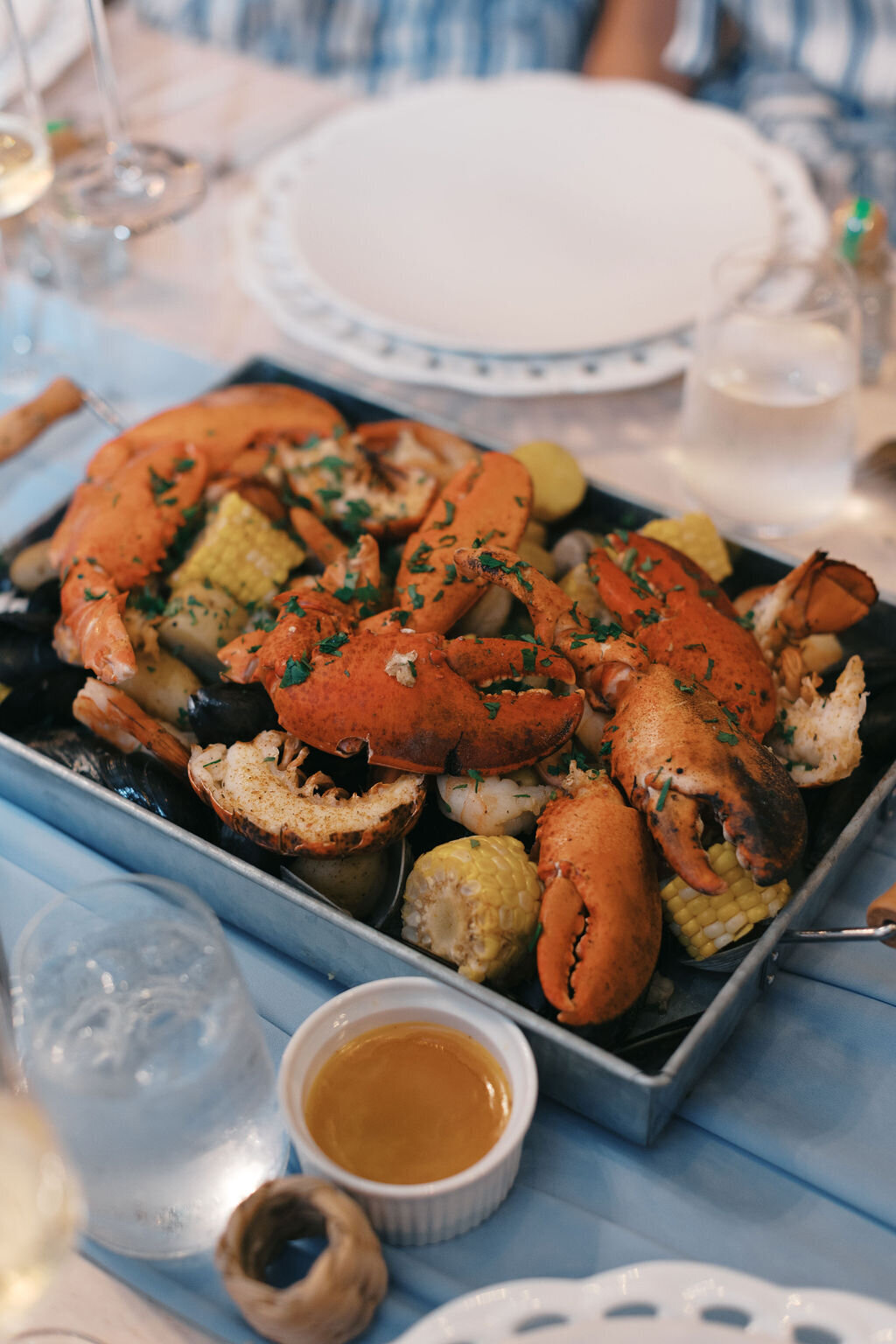 This 50th birthday celebration was a true Hamptons-inspired dream, set against the serene backdrop of a private lakefront cottage in Grand Bend, Ontario. From the elegant coastal decor to the thoughtful details, the event was designed to exude sophistication while maintaining a relaxed, celebratory vibe. Guests were greeted with custom aprons from Williams Sonoma, adding a personalized touch to the lobster boil festivities.